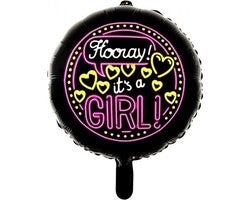 Voeg een stralend accent toe aan je babyshower of kraamfeest met deze schattige folieballon in neon-look met de tekst “It’s a Girl”.