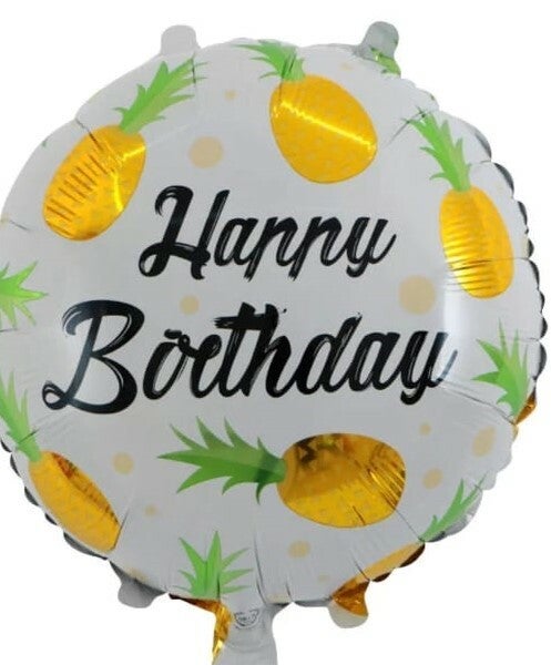 Deze leuke "Happy Birthday" ballon met een opdruk van een ananas is een vrolijke toevoeging aan het feest! De ballon wordt geleverd met heliumvulling en heeft een grootte van ongeveer 45 centimeter. Omdat folieballonnen één tot meerdere weken blijven zweven, heeft de jarige er lang plezier van!
