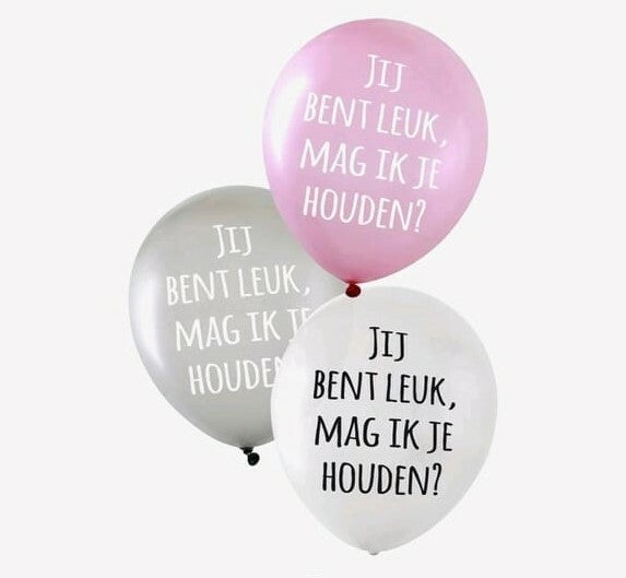 Ballon model latex met opdruk (jij bent leuk, mag ik je houden?) 1 stuk wit met helium