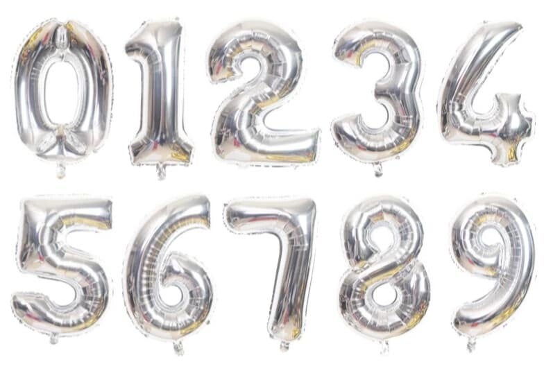 Ballon model cijfer 5 zilver 60 cm kan ivm. afmeting niet gevuld worden met helium.